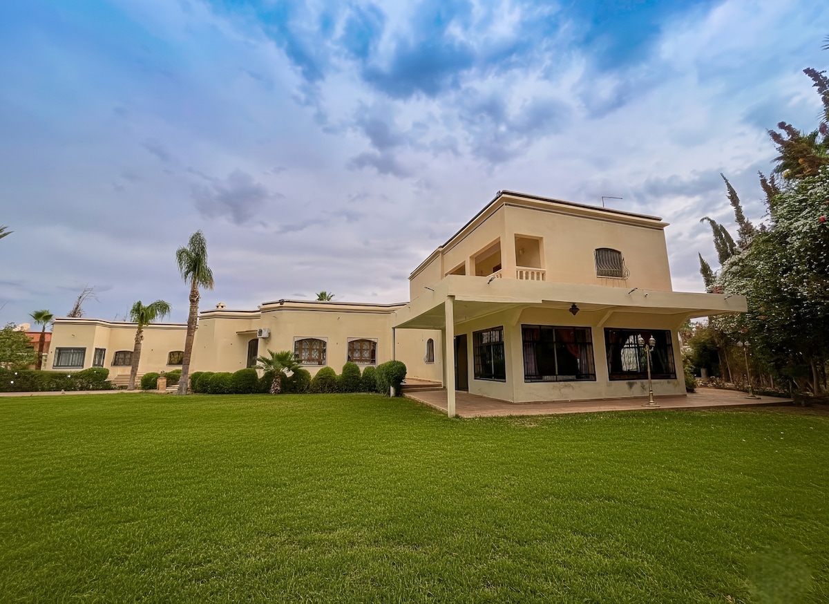 Welcome to Villa Dar Mazar, a peaceful oasis 20 minutes from Marrakech. This elegant villa blends modern comfort with Moroccan charm, featuring a private pool, terrace, garden, and five ensuite bedrooms. Perfect for families or groups, it offers privacy, tranquility, and easy access to Marrakech. Relax by the pool, enjoy meals on the terrace, or unwind in the living room. Wi-Fi, kitchen, private parking, and optional cleaning complete your stay.