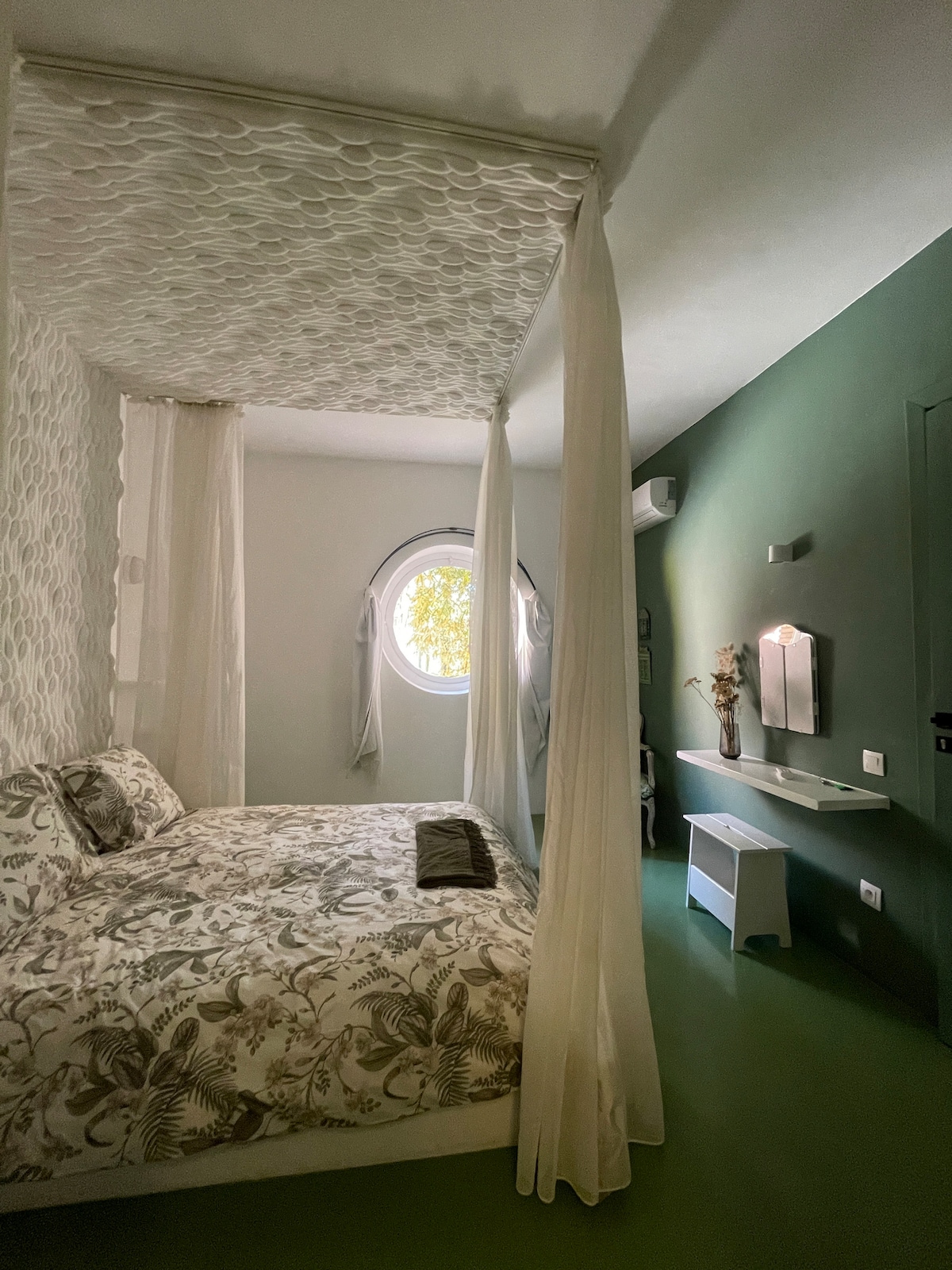 Loft with high ceilings and full Moroccan Tadelakt finish — a perfect blend of traditional charm and modern comfort. Located in the most sought-after, central hotel district of Marrakech, close to major attractions. Enjoy 200 Mbps fiber WiFi, a 50” Samsung OLED TV with Netflix, and powerful Bosch AC units in every room. Quality bedding and furniture. Large garden with relaxing spots leading to the pool.