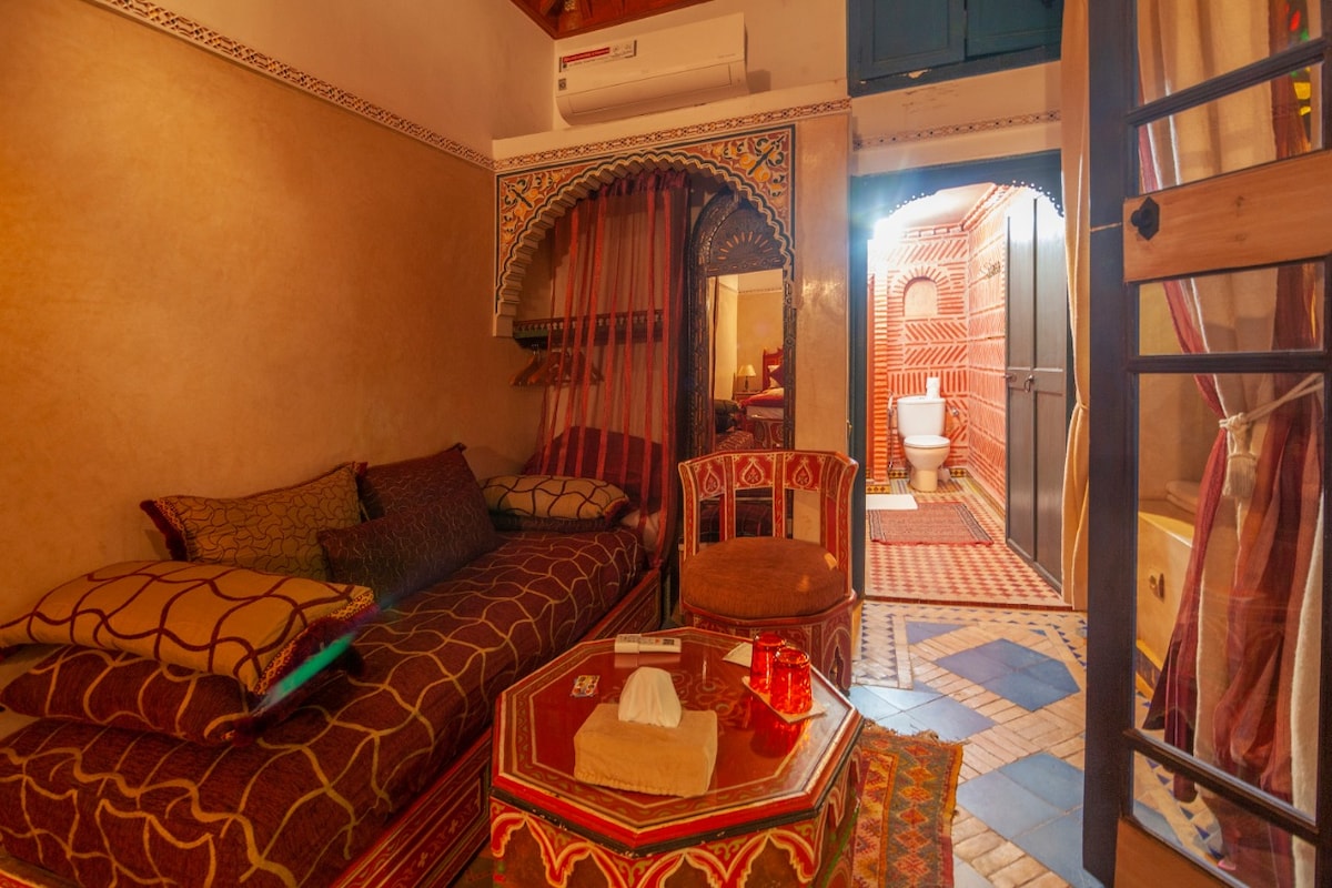 Dar Eleven est un riad au charme authentique situé au cœur de la médina et à proximité d’un accès voiture. Rénové en 2021, il bénéficie d’un confort et prestations modernes tout en conservant le style et l’esprit des anciennes demeures de la médina. Sa décoration mêle tradition marocaine et esprit vintage. Chinés lors de voyages au Maroc, en Europe et en Asie, les objets se mélangent et s’harmonisent afin de recréer une ambiance unique. 3 ou 4 chambres sont disponibles en fonction des besoins