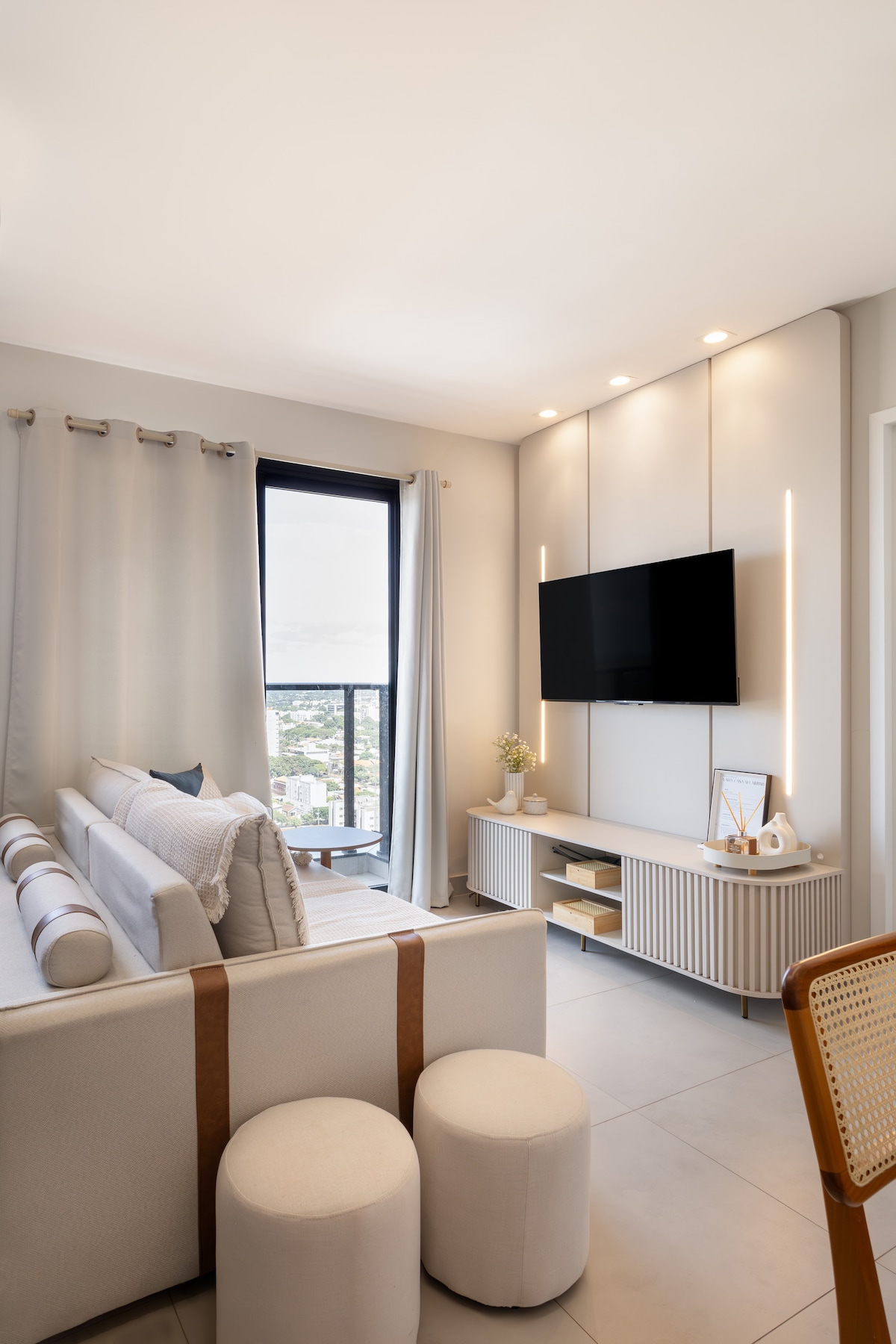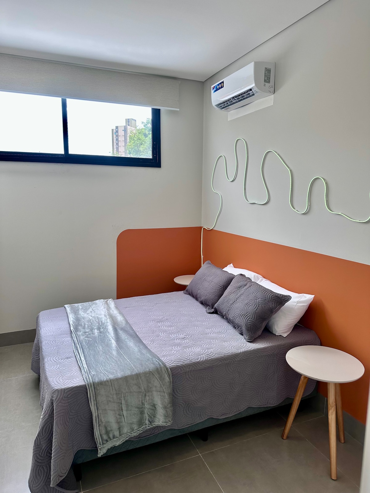 Aproveite uma estadia confortável neste cantinho preparado com muito carinho. O espaço de 1 quarto é moderno, iluminado e pensado para que você se sinta em casa. A sala conta com TV smart e um ambiente acolhedor p/ relaxar. A cozinha é equipada com o essencial e o quarto oferece cama confortável, roupas de cama, itens básicos e ar-condicionado. A localização é ótima, perto de tudo que você precisa. Cada detalhe foi preparado c/ cuidado para que sua experiência seja leve e agradável. 💛