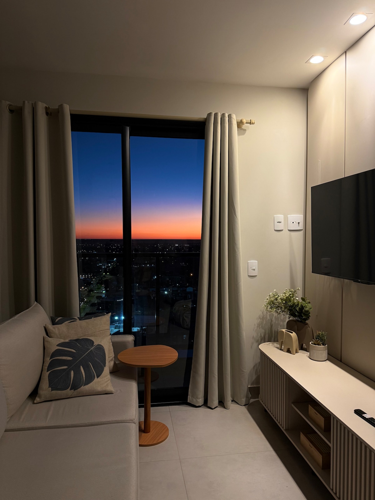 Seja bem vindo ao nosso sonho, Ao chegar , você vai se sentir em casa, pensamos em cada detalhe para você se sentir acolhido, Confortável, aconchegante, mobiliado com tudo que você precisa em um Lar Alem de estar no centro da cidade Proximo de mercado, restaurante, banco, hospitais, laboratórios e consultórios.. 1 quarto com cama de casal 1 cama de solteiro e 2 colchão extra, O apartamento fica no 10 andar do edifício recente inaugurado Sunset… Sinta se em casa, aguardo voce