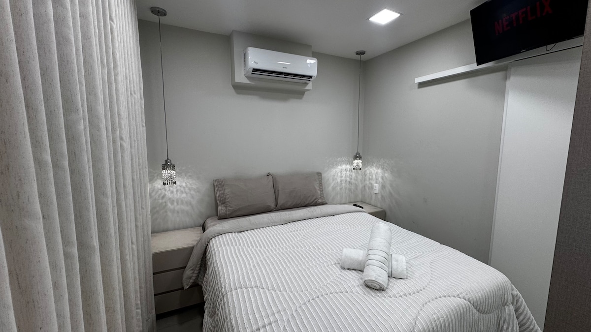 Aproveite uma estadia confortável neste cantinho preparado com muito carinho. O espaço de 1 quarto é moderno, iluminado e pensado para que você se sinta em casa. A sala conta com TV smart e um ambiente acolhedor p/ relaxar. A cozinha é equipada com o essencial e o quarto oferece cama confortável, roupas de cama, itens básicos e ar-condicionado. A localização é ótima, perto de tudo que você precisa. Cada detalhe foi preparado c/ cuidado para que sua experiência seja leve e agradável. 💛