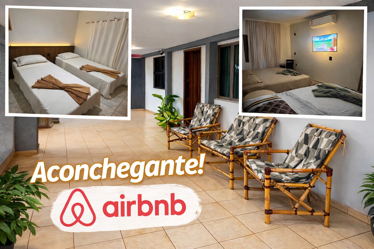 Relaxe neste espaço calmo e cheio de estilo. Ambiente ideal para quem precisa relaxar ou apenas passar alguns dias . Para locação do quarto consulte Ar condicionados Tv fechada, Netflix Máquina lava e seca Wi-Fi 100mb Geladeira grande com freezer Fogão e forno Utensílios para cozinhar Microondas Cafeteira Aquecedor portátil Quarto 1 Cama de casal, ar condicionado, Tv. Quarto 2 Cama de casal, ar condicionado, Tv. Sala: Sofá cama casal, ar condicionado, Tv Extra Colchão solteiro