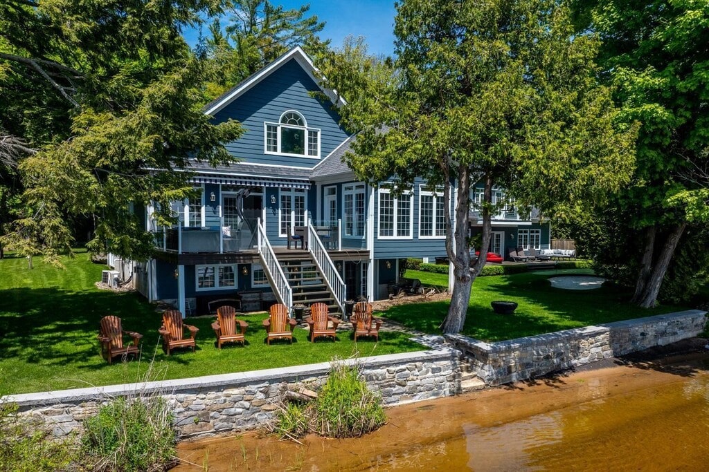 Kick back and relax in this calm, stylish space. Professionally designed and decorated by HGTV award winning designer. There are three buildings on this property. The garage bunkie which has a king bed and 3 piece bathroom. The main cabin with 3 beds and 2 baths and the boathouse bunkie which features a king size bed and is cantilevered over the lake. The views are breathtaking and deep water off the dock with No weeds and excellent fishing right from the dock. Pickerel, bass, perch, muskies