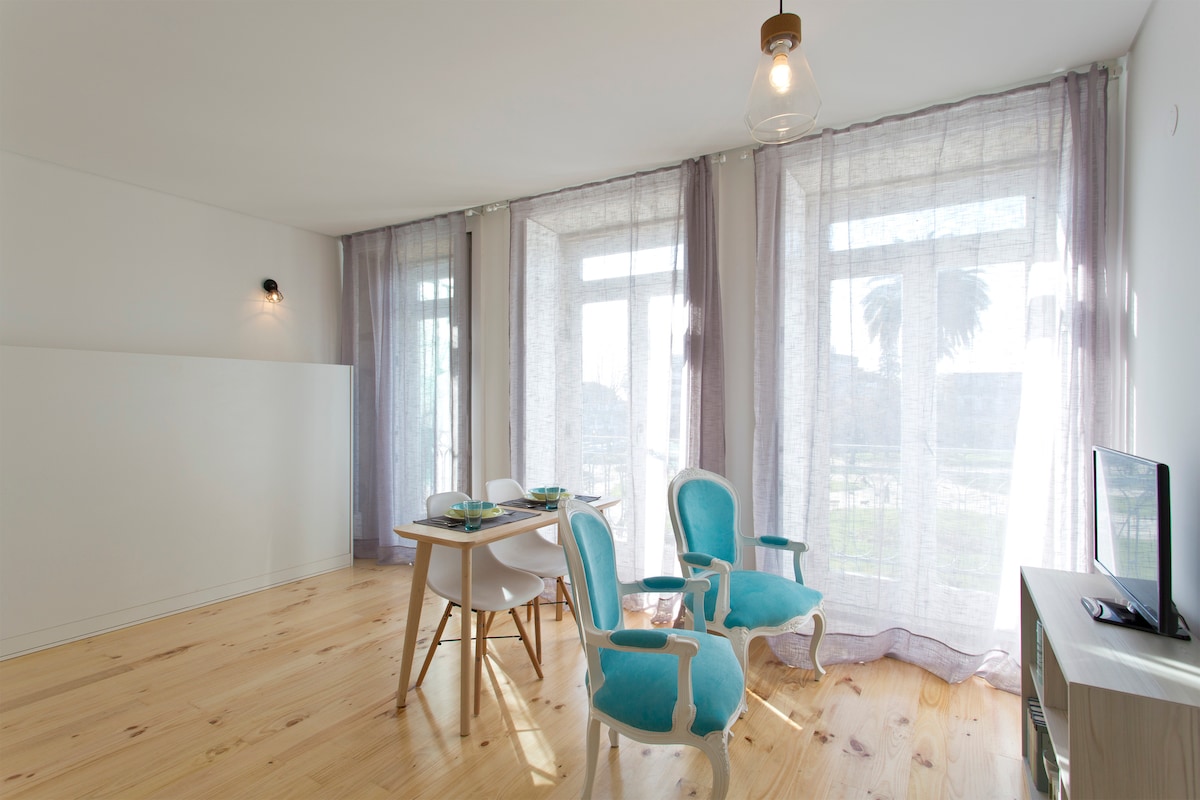 Stylish Loft in Porto’s downtown area of Trindade, with beautiful views over the city's center through its large sunny balcony. In the heart of Porto’s downtown, minutes away from Porto's main attractions, bars, restaurants. This unique Loft boasts a striking modern decor, paired with all the necessary amenities for an exceptionally comfortable stay, including air conditioning and amazing views. Perfect for a city break, business trip, or a cozy home base while exploring what Porto offers best.