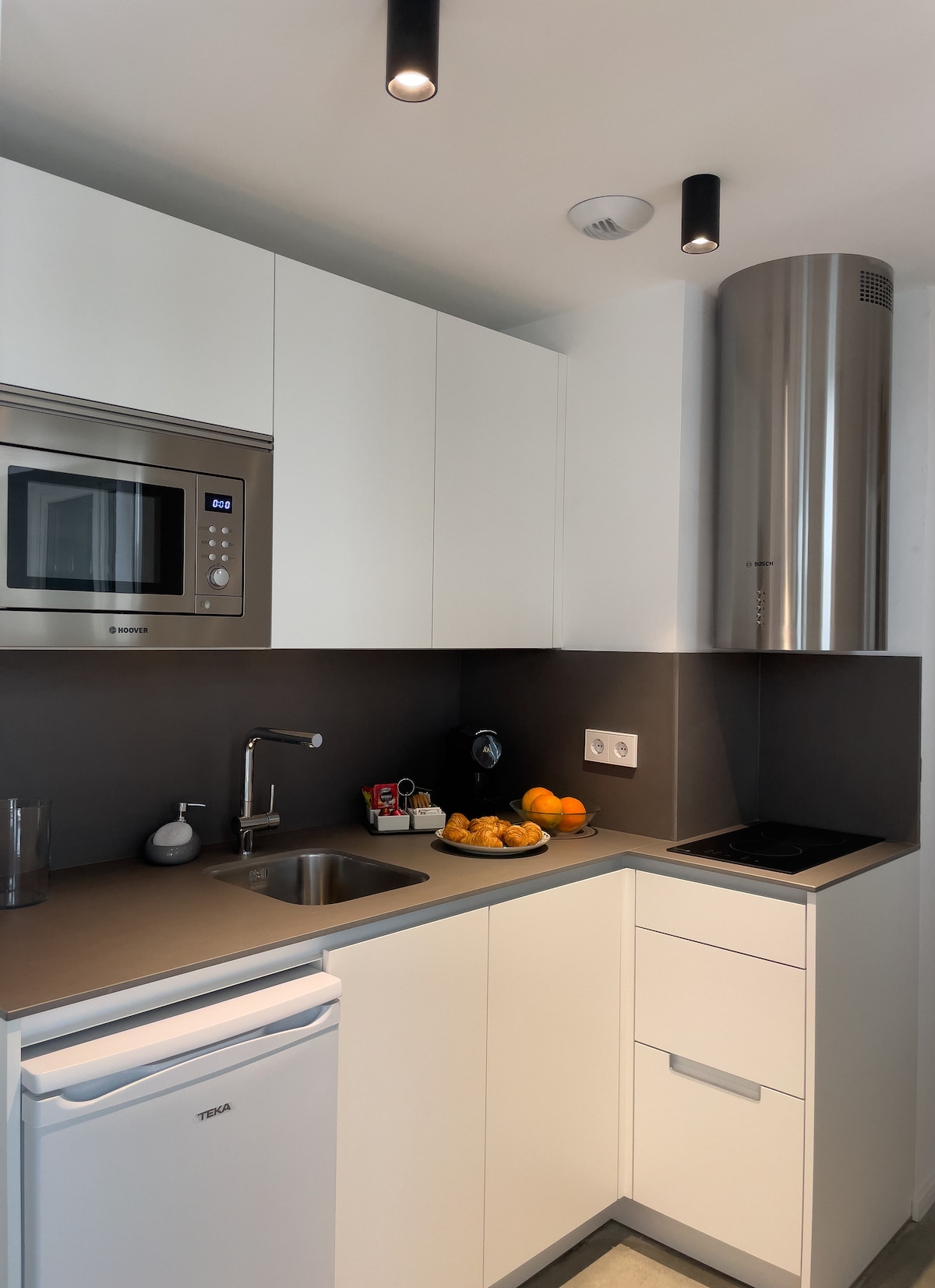 • Studio for up to 2 adults • Queen or double-size bed • Climate-neutral & fully carbon offset • Avg. 19 m2 • City views • Kitchenette • Access to a fully equipped shared kitchen • Access to shared laundry • Air conditioning • Regular professional cleaning • Local gym access included • Yoga mats & online yoga studio access included • Contactless access • Early check-in & late check-out (on request) • Fast WiFi • Smart TV • Free luggage storage • Baby crib available