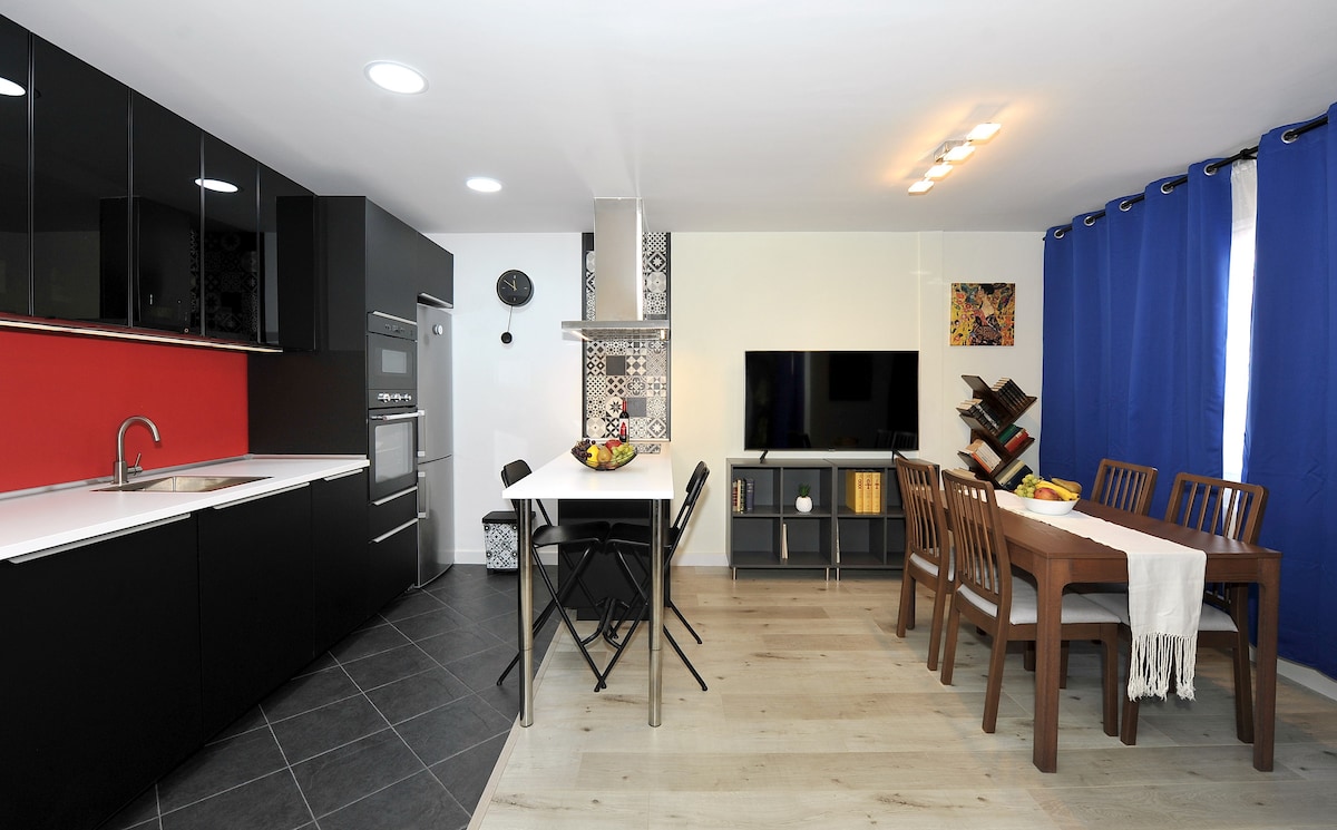 宽敞的公寓,私人停车场和地铁1分钟。