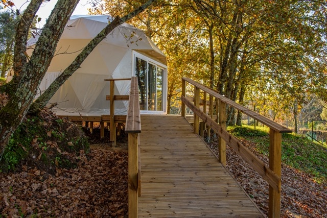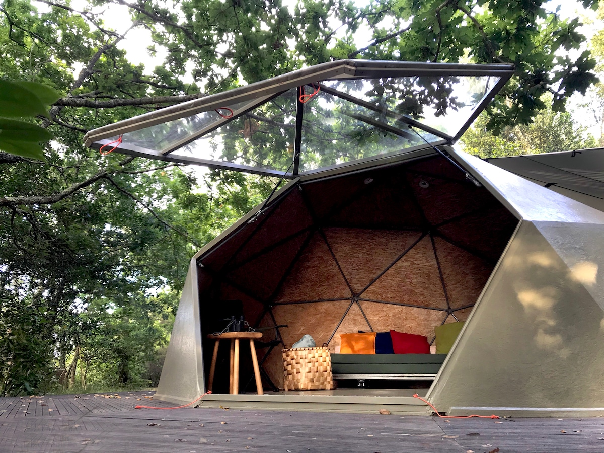An excellent place to rest and recharge your batteries in a small oak forest in Covas in the Serra d'Arga. The dome has a fully equipped outdoor kitchen and a bathroom with outdoor shower just a few metres away. The BATH is PRIVATE, even if it appears otherwise in an earlier comment. There are several natural lakes with pure water and hiking trails in the region. The beaches of Moledo and Caminha are about 30 minutes away. For 25,- you can rent our tent sauna.