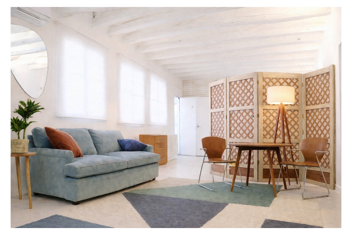 Beautiful and compact loft-style cozy space with double height, full of natural light and warmth, located in the center of Madrid. Recently renovated. Part of a 19th-century manor villa, bathed in natural light and featuring 4.5-meter-high ceilings. A haven of calm and elegance in the historic heart of Madrid. Located on the Museum Mile, next to El Retiro Park, the Reina Sofía and the Prado. Just steps from Atocha Station, surrounded by art, gardens, and monumental architecture.