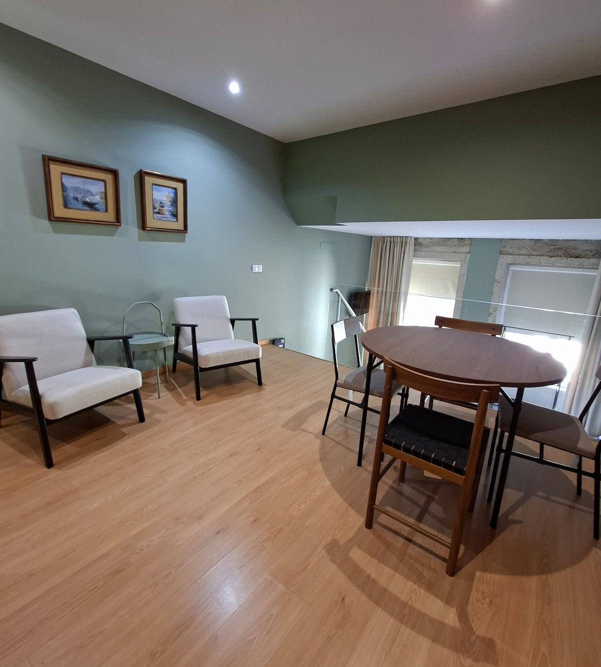 In the heart of the historical center of Porto, boasting breathtaking views over the city and the Douro river, a completely refurbished apartment in an historical building. Located on the 3rd floor (no elevator), organized as a loft on two levels (open spaces). Please notice that there are low beams in the attic.