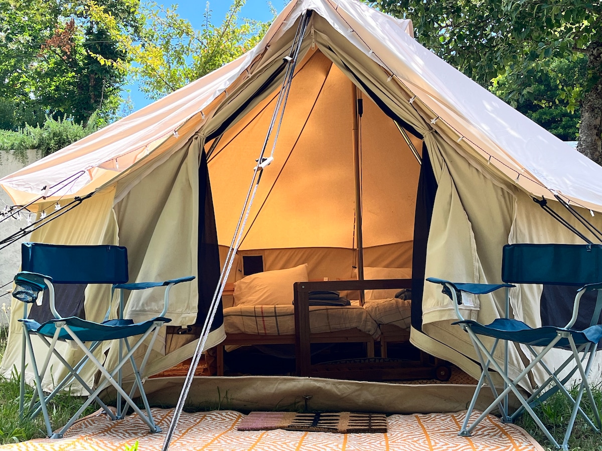 Tucked away in a peaceful agricultural valley, our riverside bell tent offers a rare chance to slow down, unplug, and immerse yourself in nature. Just 50 m from the river and a short stroll to a hidden swimming spot, you’ll wake up to birdsong, fall asleep under the stars, and enjoy the simplicity of off-grid living. 5-minute walk to the local river beach with café/bar 1.8 km from Serpins village centre & bus stop (hourly buses from Coimbra)
