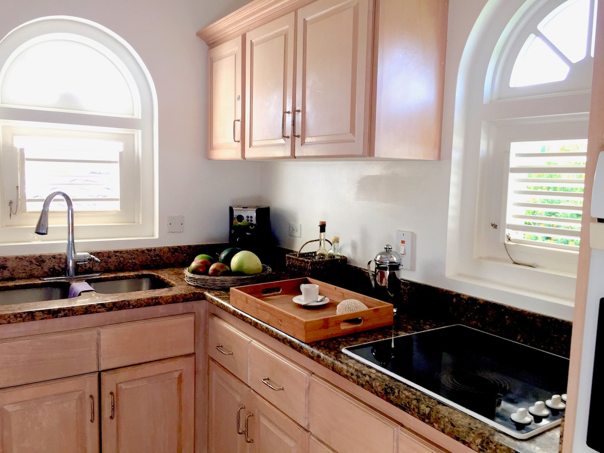 The Cottage sits on the compound of Buchanan House in the Upscale Pine Gardens Neighborhood. Privacy, convenience, comfort security and friendliness are Hallmarks of a Buchanan stay. Amenities include a large swimming pool, executive gym, a cozy Gazebo and use of washer/dryer.The cottage sleeps up to 4,fully air-conditioned with 2 bathrooms,2 queen beds (1 ensuite bedroom & living room has Queen bed/bath) plus a spacious outdoor patio. Experience the warmth and friendliness of your host, Ferida