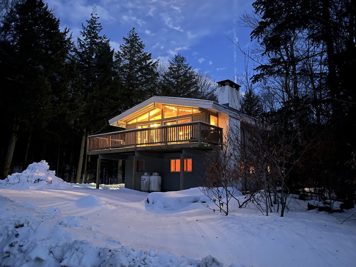 中世纪现代主义风格的佛蒙特州梦幻度假木屋,靠近滑雪场、湖泊和森林