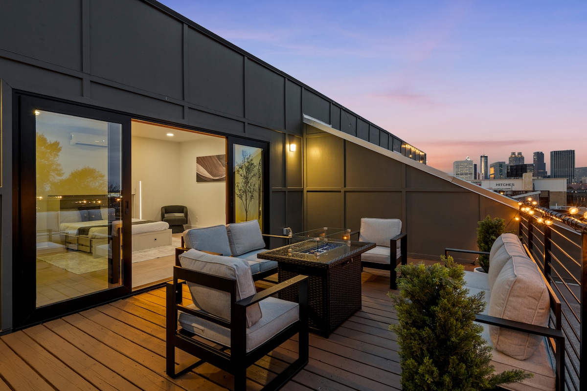 Welcome to your Castleberry Hill retreat, set in the heart of downtown Atlanta with space to gather and unwind after exploring the city. - Sleeps 10 | 3 bedrooms | 5 beds | 2.5 baths - Private rooftop patio w/ skyline views - Lofted mezzanine lounge & TV - Kitchen & dedicated workspace - Free parking garage on premises - 2 spaces - Elevator, smart lock & in-unit washer/dryer