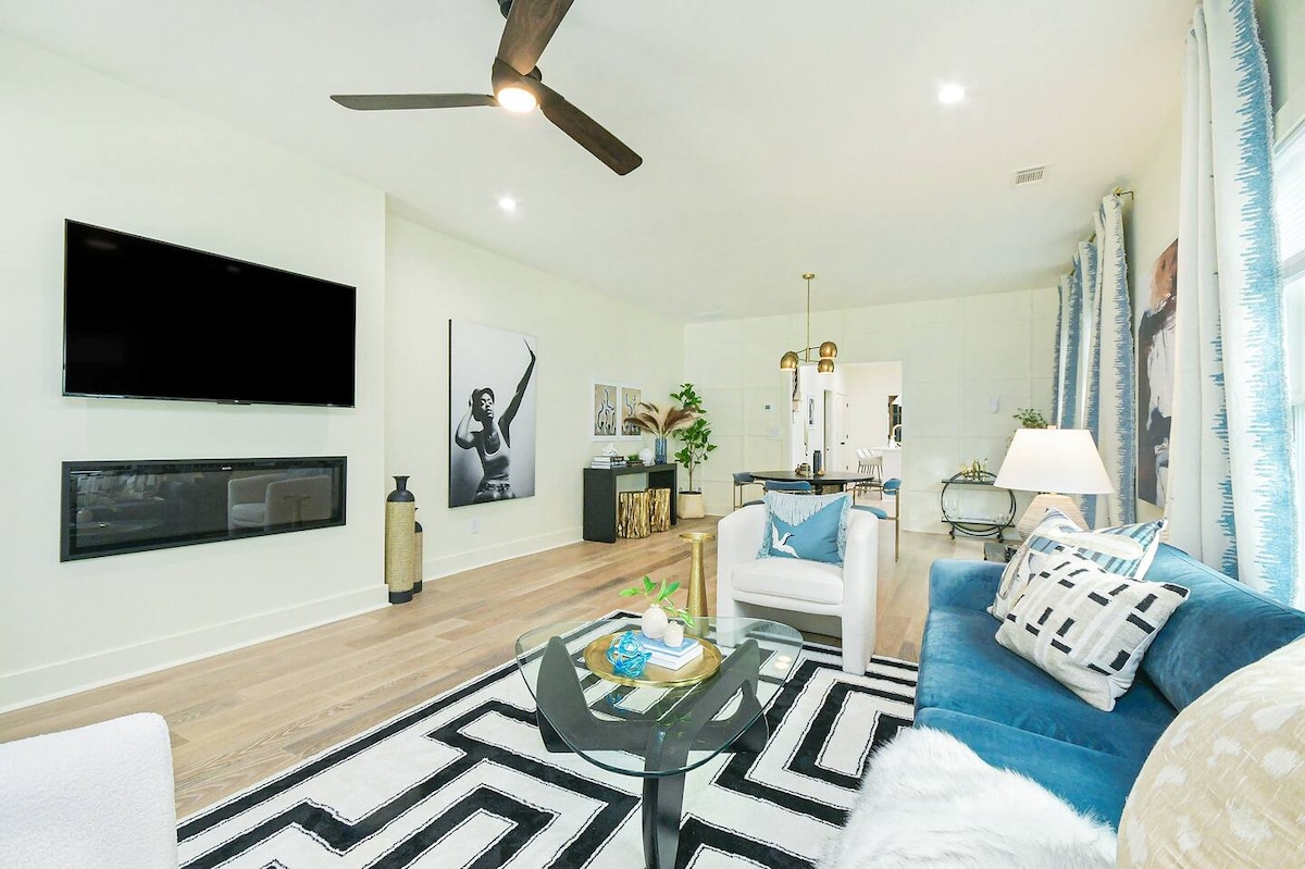 Make your trip to Atlanta unforgettable when staying at Camilla Haus, a 2023 luxurious modern built. Our home is a sophisticated new construction with high end finishes featuring 10 ft ceiling, open floor plan, a grand chef kitchen, double island with high end wood slat accent, designers bathrooms, large master suite with a double shower, pendant lights over nightstands, largeTVs in each room, LED lights throughout and more…