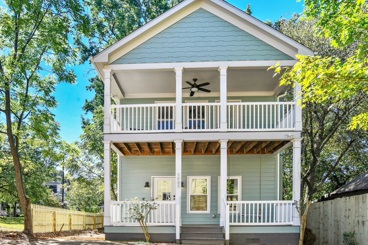 This custom designed home was given 5 stars from the founder & CEO of Airbnb after his stay. With 2 stories of porches & a 2 story wall of windows overlooking the Atlanta Eastside Beltline trail, this is a people watchers dream! Walking distance to restaurants & ATL hotspots: Krog Street Market, Ponce city Market, & The Eastern. Less than 3 miles to Mercedes Benz Stadium, Centennial Olympic & Piedmont Park. 1/2 mile to the grocery store & movie theatre. 15 min to Hartsfield-Jackson airport