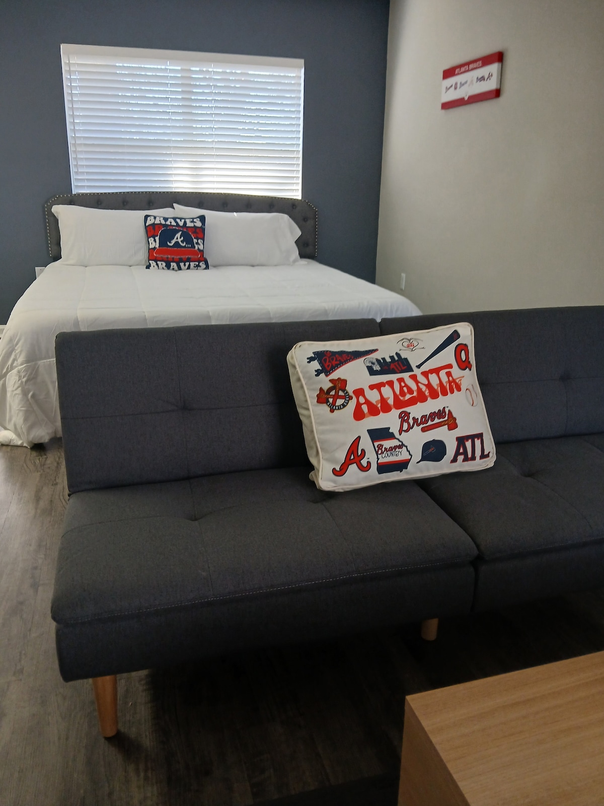 Experience city living with the comforts of home. This unit is perfect for solo travelers and couples as a short term vacation home or corporate furnished housing who want to escape the crowds of hotels. This newly renovated condo is conveniently located in the heart of downtown: Atlanta's own Peachtree Street in the Hotel District. This studio apartment also offers a short walking distance to tourist attractions GA Aquarium, World of Coke, conference centers, Mercedes Benz Stadium and MARTA.