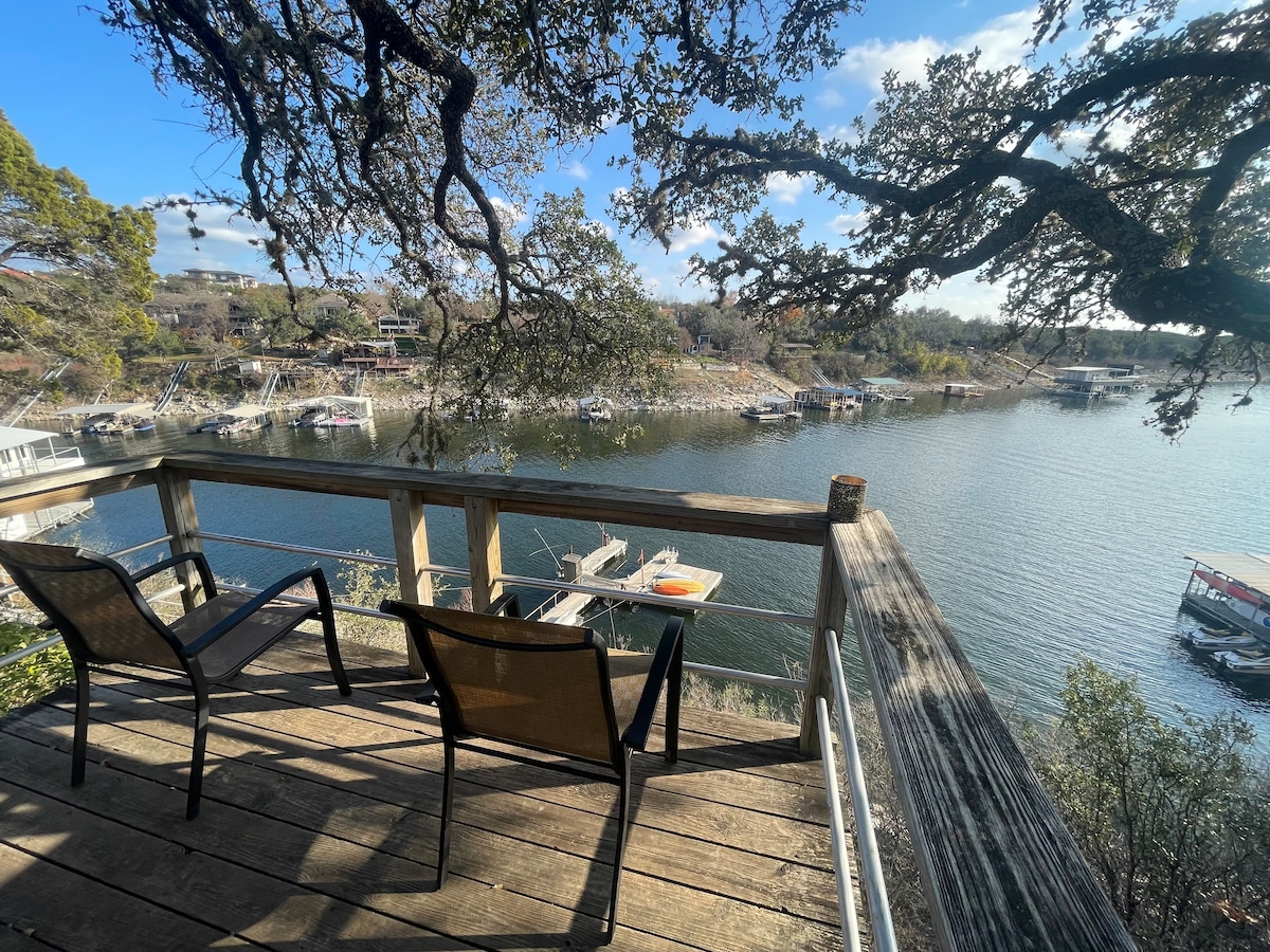 The Sunset Cove Lake House on Lake Travis is situated right in the heart of Volente Village. This is a 4 bed 3 full bath house on an acre lakefront lot w/ private boat dock and two boat slips on property the lake is full and our boat dock is usable. Perfect set up for three families to enjoy fishing, swimming, boating, and various lake activities. Directly across from and walking distance to VIP Marina and The Volente Water Park where you can rent boats/jet skis by the day.