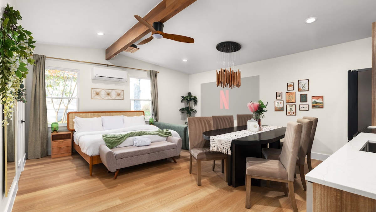 步行可到Zilker!加大双人床、果岭、热水浴缸!