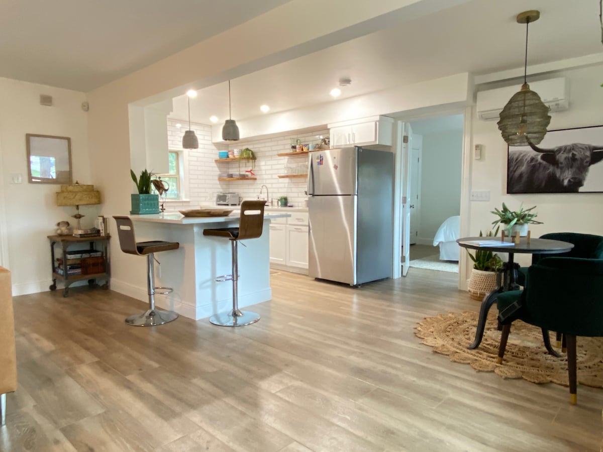 Explore Austin from this sweet back guest house situated in Austin's East Side. Close to Rainey St. and downtown, this bright back guest house has a full kitchen, room for relaxing and a cozy bedroom. With a full kitchen, smart tv, and full bath, you’ll have all the comforts for your stay. Location is ideal! - 5-10 mins to Ladybird Lake - 6 short blocks from E. 6th - 10 min walk to Convention Center - 20 min walk to Capital