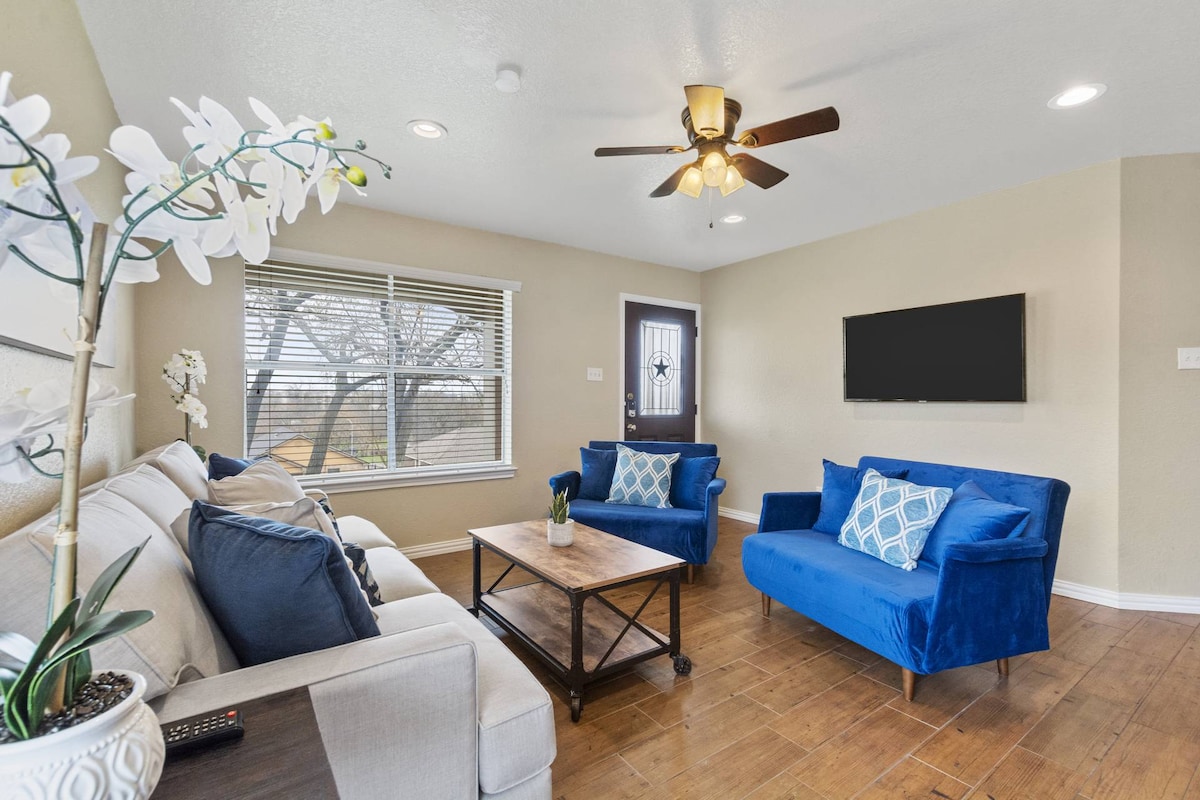 Pool/hot tub coming early spring 2026 - 2.5 mi away from Downtown Austin - 1 mi away from University of Texas -5 min walk (30 sec drive) to grocery store, coffee shops, multiple restaurants, convenience stores, smoothie shop, park, and swimming pool. -Golf course across the street. Play freely on golf course after 5pm - 15 min to Austin airport, amphitheatre, F1 track - 12 min away from Barton Springs, Zilker Park, ACL festival - Couches are sleeper sofas -Pet fee is $3