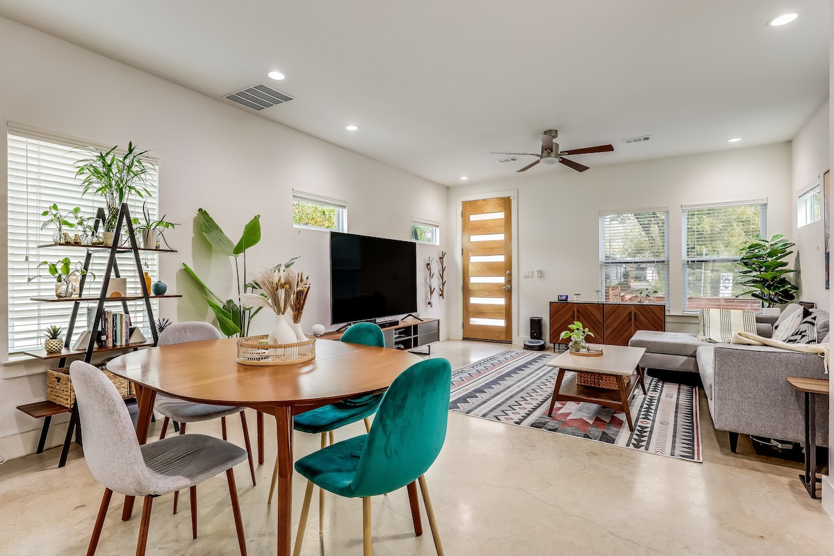 Unique, Bohemian and all the comforts of home! Ophelia House, set on Austin's hip East Side, incredibly close to all things Austin, is ideal for exploring downtown, soaking in the hidden gems of the East Side, or hitting the UT campus. The perfect Austin mix of quirky, lush, unique, and artsy with a lovely side of comfy. Cozy up for a movie night, chill on the patio with a wine or coffee and your favorite person! Walk to Moody Center, The Paramount, Sour Duck and 3 coffee shops!