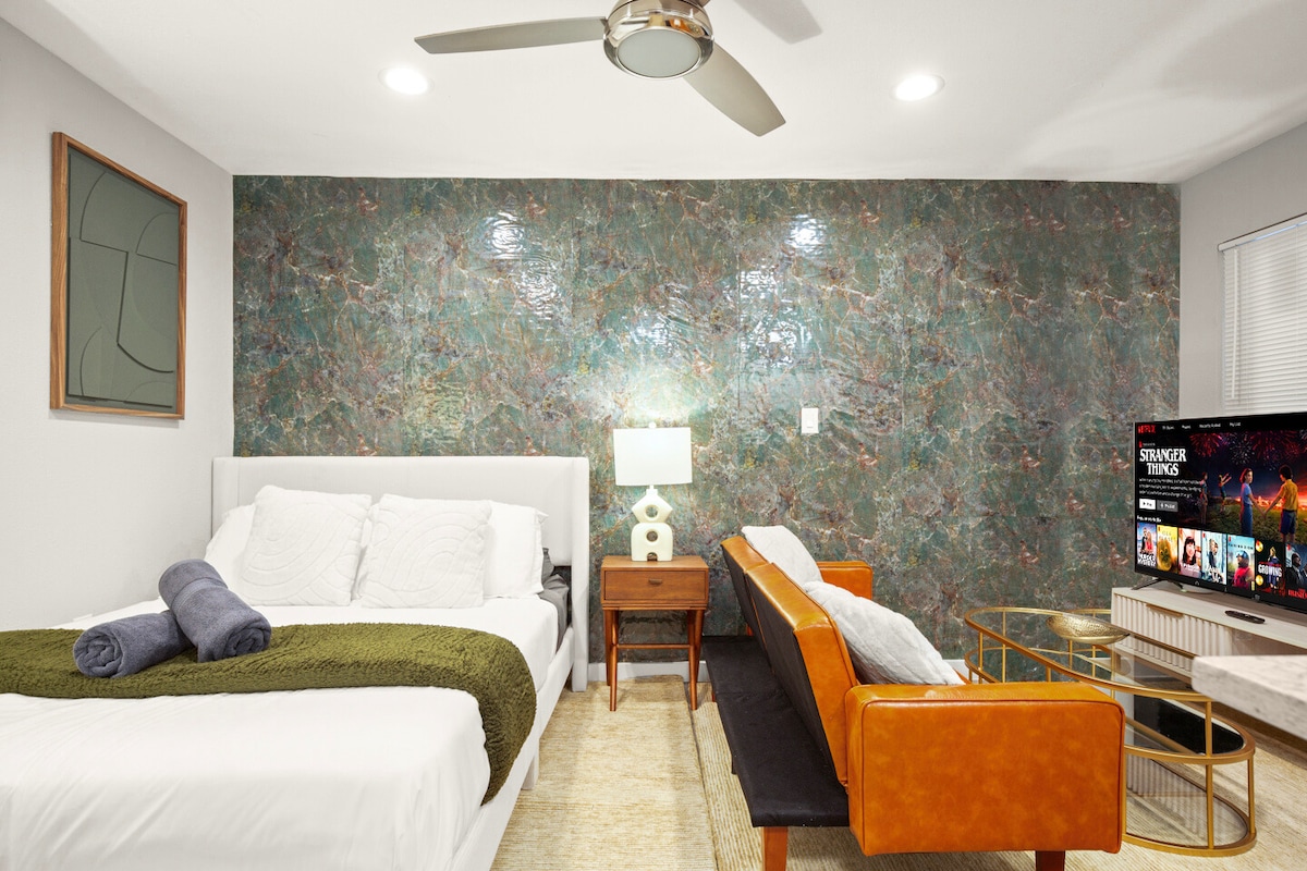 This chic place offers everything you'll need for a luxurious stay. The entire building was thoughtfully designed for short term stays. Staying long term…our guests will be always be taken care of. Park with the ease of valet, treat yourself to the coffee bar lounge, or take a class at the indoor yoga studio. Also don’t miss the swanky vibes at the rooftop pool. This City Chic Loft is located on Ladybird Lake surrounded by nature and walking distance to everything Beautiful Austin has to share.