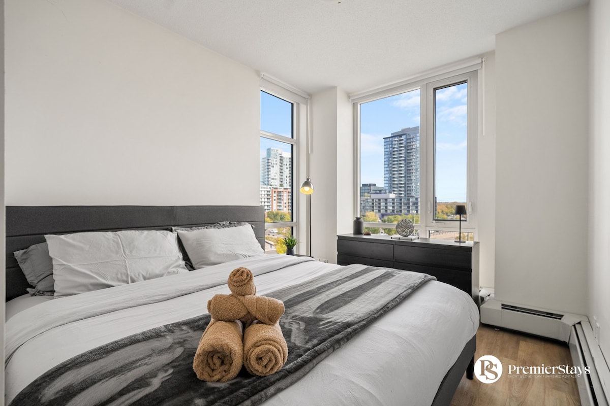 Welcome to our stunning downtown Calgary corner unit condo! This modern retreat offers you the perfect combination of convenience, luxury, and breathtaking views. As you step inside, you'll immediately be captivated by the floor-to-ceiling windows that showcase the stunning city skyline and majestic mountain vistas. Please be aware that the front doors of the building lock at 10 pm. If you book, you'll have to pick up the key/fob in a different location. *** POOL is closed for the winter.