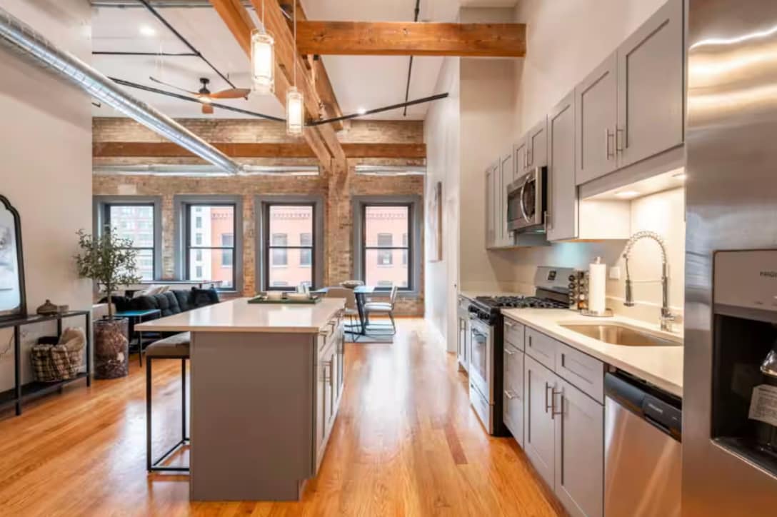 Enjoy Chicago in our modern & spacious 1-bedroom loft in the South Loop. Central location to Grant Park, Soldier Field, Museum Campus, McCormick Place and more! Our location has a walk & transit score of 97, providing easy access to all the hot spots on your itinerary! Expect lovely natural light, luxuriously tall ceilings and room to accommodate your entire group. Guests are always pleasantly surprised by the size of the space and the modern amenities we provide!