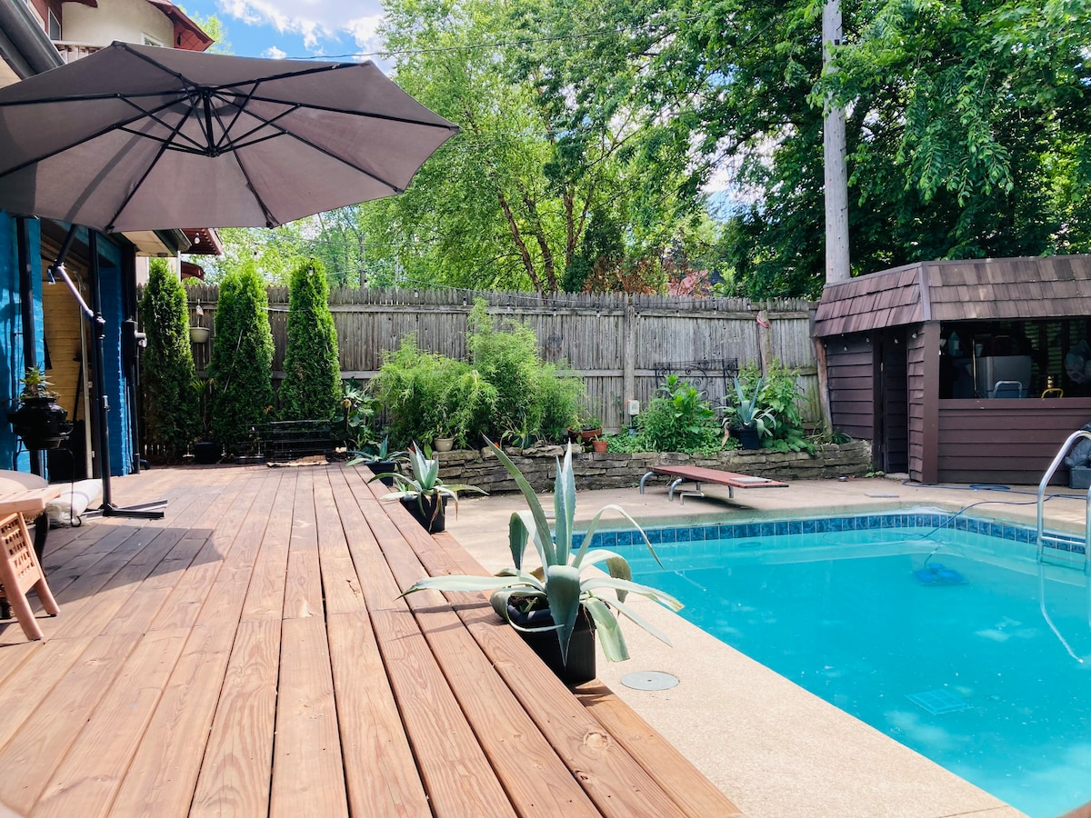 Enjoy our Pool & Play Getaway in hot Logan Square! Thoughtful upscale touches throughout. Conveniently located on a tree-lined Chicago Cul-de-Sac, just a 5 min walk to the L Blue Line. Relax in our extended outdoor living space, spend an afternoon lounging in the pool, al fresco grilling & dining on the deck or toast smores over the firepit in the yard. We're steps from all the hot restaurants and nightlife, including Chicago's #1 farmer's market. Free permit street parking for our guests.