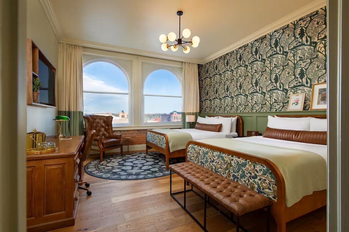 Our Executive King Suites are perfect for a long stay, whether your trip is work or pleasure. This spacious room provides a sitting area, a table for working, meeting, or eating, and a large height adjustable desk to get in your standing time. Rest up with our Tuft & Needle mattress, soft Brooklinen sheets, white noise machine, and blackout blinds.