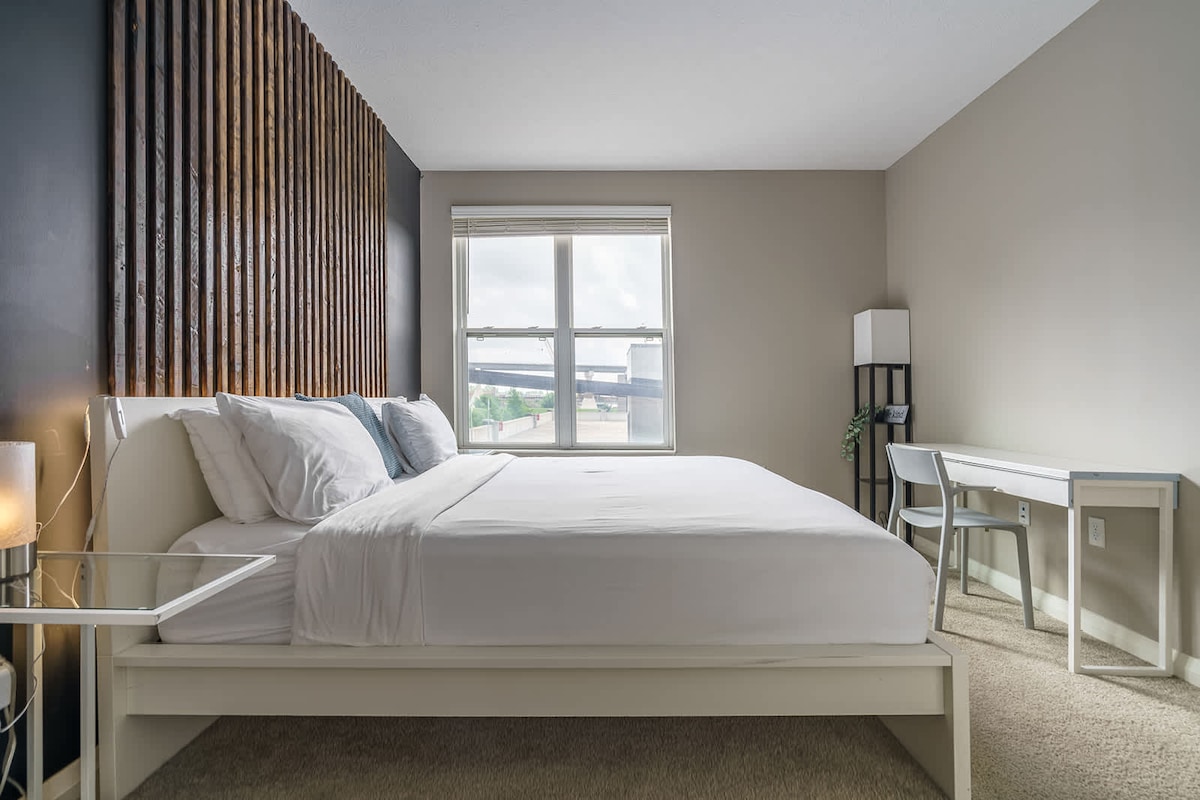 This beautiful, 500 sq ft modern and open-floorplan one bedroom apartment is conveniently located just across the Olentangy River from downtown Columbus. The apartment is close to all the excitement that the city has to offer without the hustle and bustle of downtown living. This apartment is ideal for a couple or small groups to eat together, hang out, relax, explore the surrounding areas. There are several bars, restaurants, and retail spaces within walking distance!