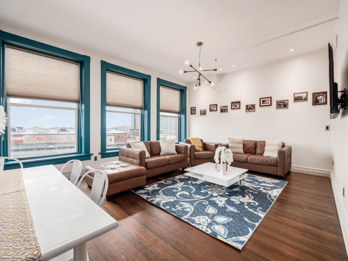 Authentic character abound in this 1920s era studio loft. The location does not get any better. The cities best restaurants are right outside the front door. Convention Center- Across the street Nationwide Arena - 5 minute walk Short North District - Outside the front door The North Market - 5 minute walk Goodale Park - 2 minute walk Lower Field - 25 min walk Kemba Live - 12 min walk Parking not included. Parking available at nearby paid garages or paid street parking when available.