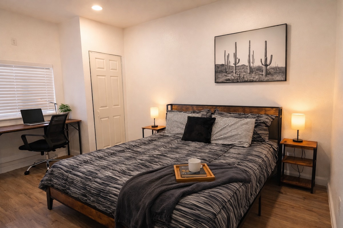Esta adorable propiedad ofrece una estancia genial y fabulosa para los huéspedes. La habitación cuenta con una cama Queen muy cómoda y elegante .Tiene una cocina equipada y un baño privado para una ducha refrescante. Manténgase conectado con WiFi y TV con Netflix ,You Tube ,disfrute de estas comodidades (solicite una lista). Ya sea que esté explorando la vibrante ciudad o probando suerte en los casinos, nuestro estudio es la base perfecta para su aventura en Las Vegas.