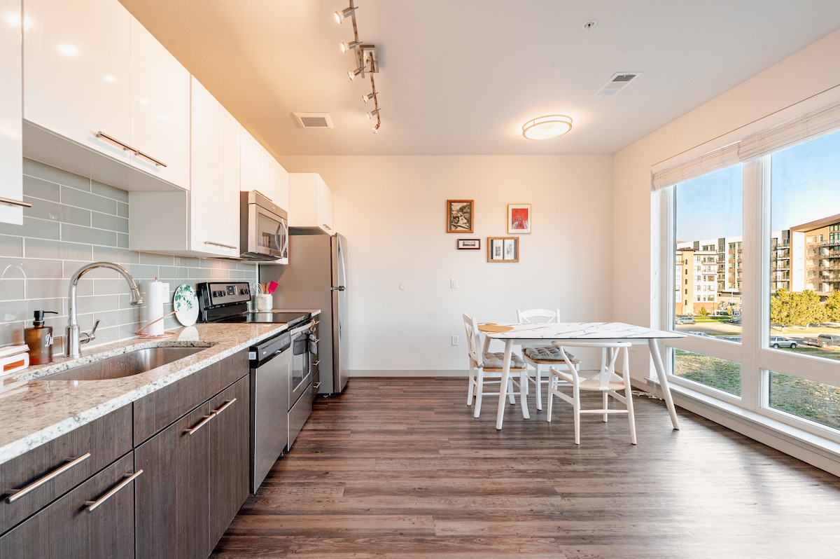 阳光明媚的DTC公寓,加州特大号床,2分钟到轻轨