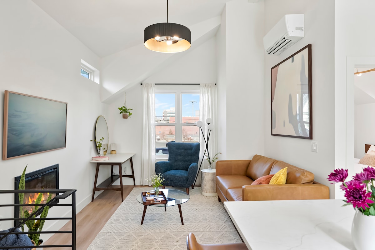 Prime location - Spacious and stylish 1-bedroom, 1 bathroom loft in the heart of Downtown Denver! Featuring high ceilings, oversized windows, and Colorado themed décor, this loft offers a perfect blend of comfort and charm. Enjoy top-tier convenience with dining, shops, and the Colorado Convention Center all within a 5-minute walk. Fully stocked kitchen, in-unit washer/dryer, and two large 4k smart TVs make this loft your ideal downtown home base, whether you’re here for work or play.