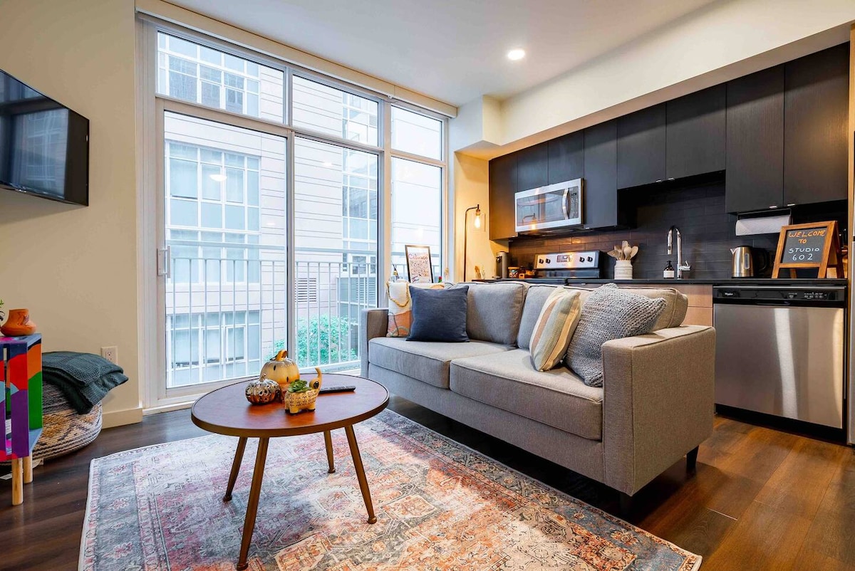 Directly across from Union Station, this bright corner 2BR/2BA makes Denver effortless: hop the A-Line from the airport, walk everywhere. Unwind in a year-round heated saltwater pool, 2 jacuzzis, firepits & grills; then cue a movie on the projector with surround sound. Floor-to-ceiling views, a comfy king daybed to lounge in the living room, and a plant-filled ZenDen create calm. Luxe resort amenities + unbeatable location = higher vibes for date nights, friends’ trips, or biz trip.