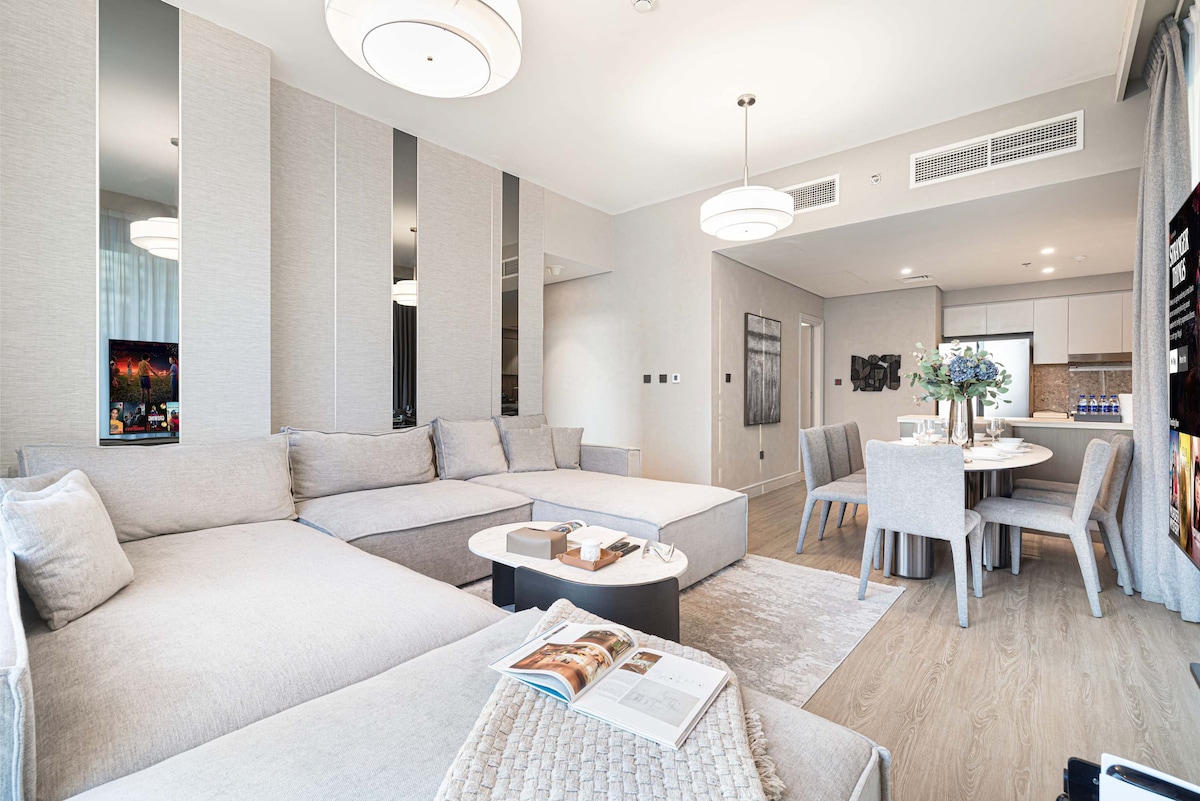This 2 BR, fully furnished apartment, is within an elegantly designed apartment complex, The Lofts, that redefines the concept of spacious living in the heart of Downtown Dubai. Guests can enjoy a range of exclusive amenities including swimming pools, kids area, squash courts, and immaculately maintained gardens. It offers exquisite views of Burj Khalifa, Dubai Opera and Dubai Fountains while its central location avails easy access - a 2 min walk to the Dubai Mall metro station and Dubai Mall.