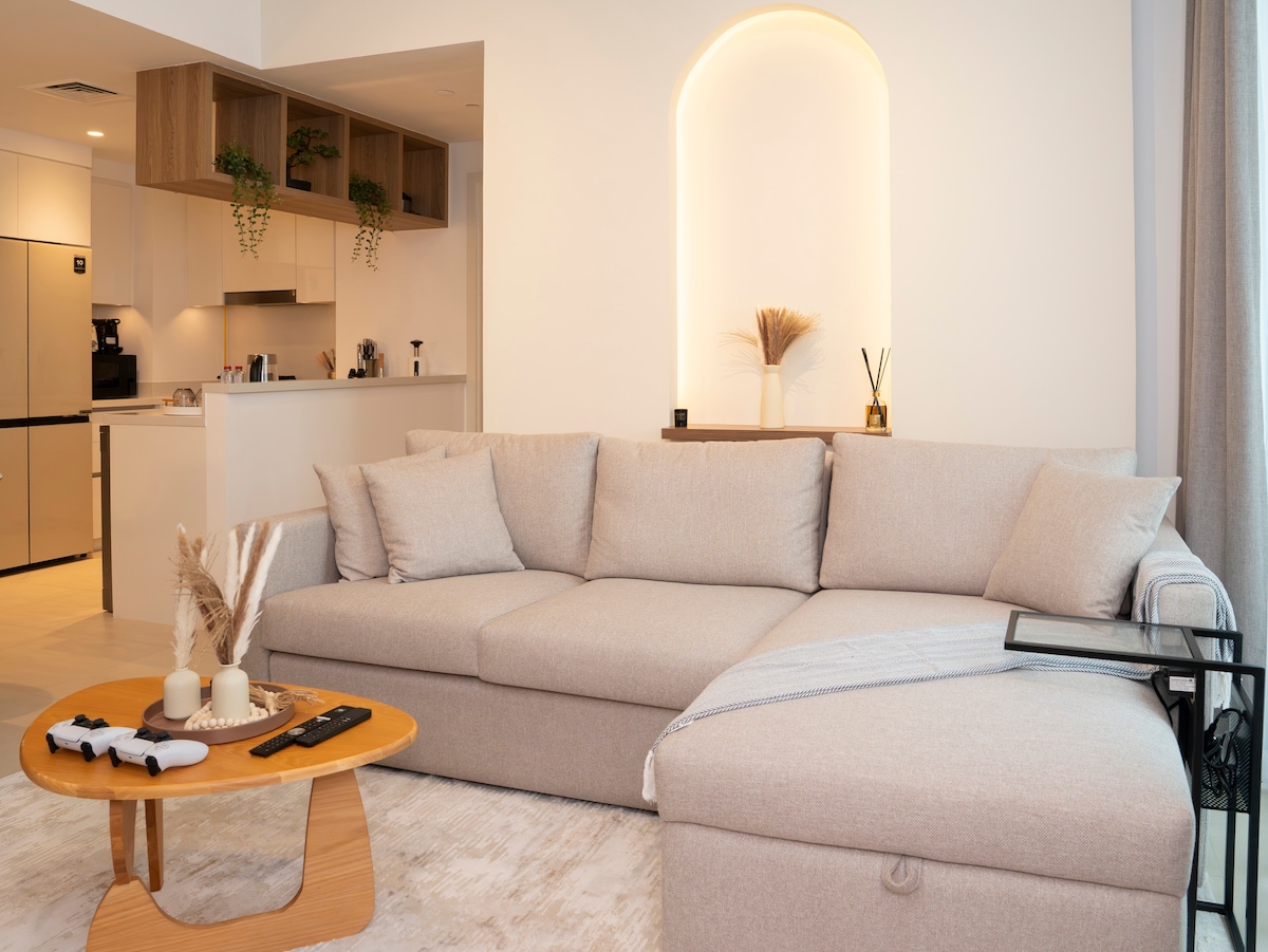 Welcome to your perfect home away from home! This cozy and thoughtfully designed apt was crafted with love to ensure every guest feels relaxed, comfortable, and cared for. Every corner radiates warmth and peaceful vibes, offering a serene escape to unwind perfect for a holiday with loved ones or a solo staycation! ✨ Canal & Burj Views 🚕 10 mins to Dubai Mall 🚋 2 mins to Bus stop 🏋️ Free Gym Access 🏊 Free Swimming Pool ♨️ Free Steam & Sauna 💟 Perfect for Family 🚗 Free Reserved Parking