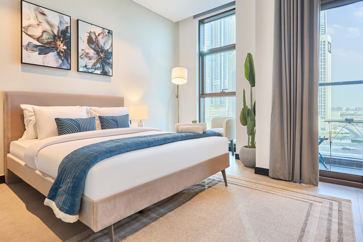Chic studio apartment in the heart of Dubai, boasting a killer skyline view from the balcony. Just a quick 7-minute walk to Dubai and the mighty Burj Khalifa. Fully loaded for your trip, touristy or business, with all the essentials you could crave. Luxe hotel-style linens and towels for that extra comfy touch. Plus, score free access to a fully stacked gym right in the same building as well as a nice outdoor infinity pool!