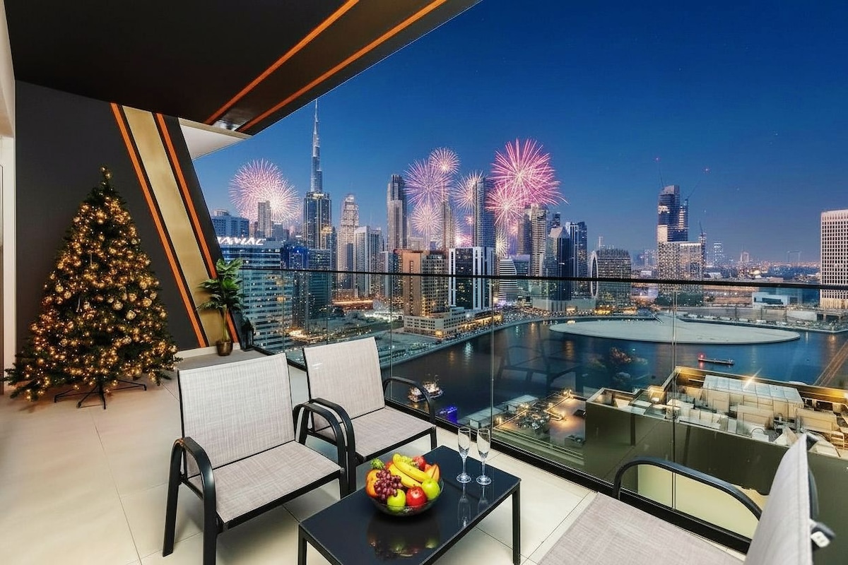 可欣赏哈利法塔和运河景观的1卧公寓