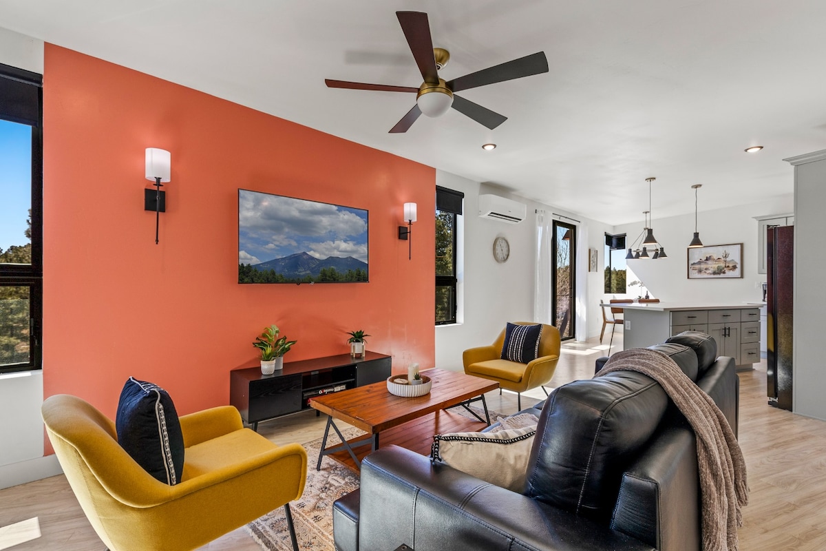 Luxury guest suite with amazing views of the San Francisco Mountains with direct access to the Coconino National Forest hiking and biking trails and some of the best stargazing in north America! Located 8 minutes from the east side of Flagstaff and 15 minutes to the city, yet conveniently centered between the Grand Canyon, Antelope Canyon, Sedona, Horeshoe Bend, Sunset Crater, Wupatki and Walnut Canyon National Monuments, Meteor Crater, the Petrified National Forest and historic Route 66.
