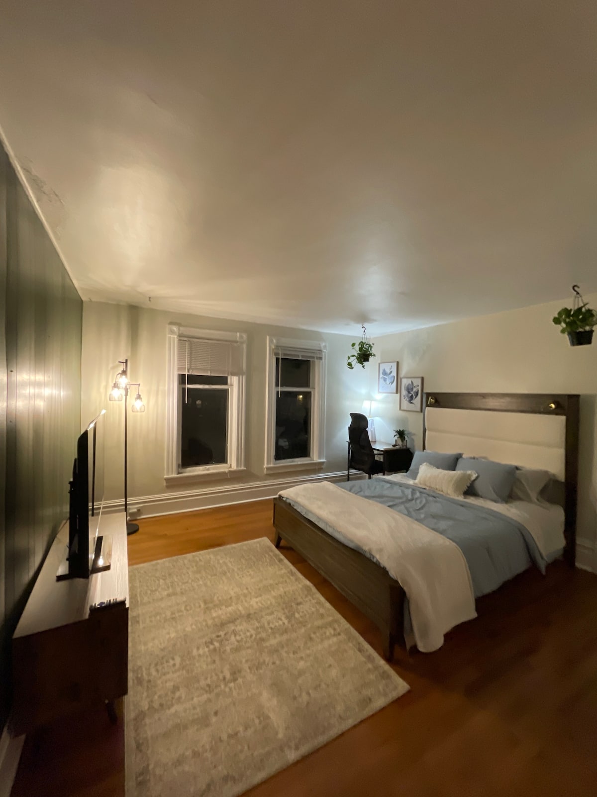 Apartment 1 is the lower unit of a charming two-unit home, offering a cozy stay with historic character. Enjoy original hardwood floors, beautiful woodwork, & built-in cabinets in the dining room & kitchen. A large dining table is perfect for meals or work. Relax with radiant heat, blackout blinds, ample closet hanging space, & 680-thread-count sheets. Bedroom 1 features an original pocket door. Each unit has its own private entrance; please note the upper unit may be occupied during your stay.