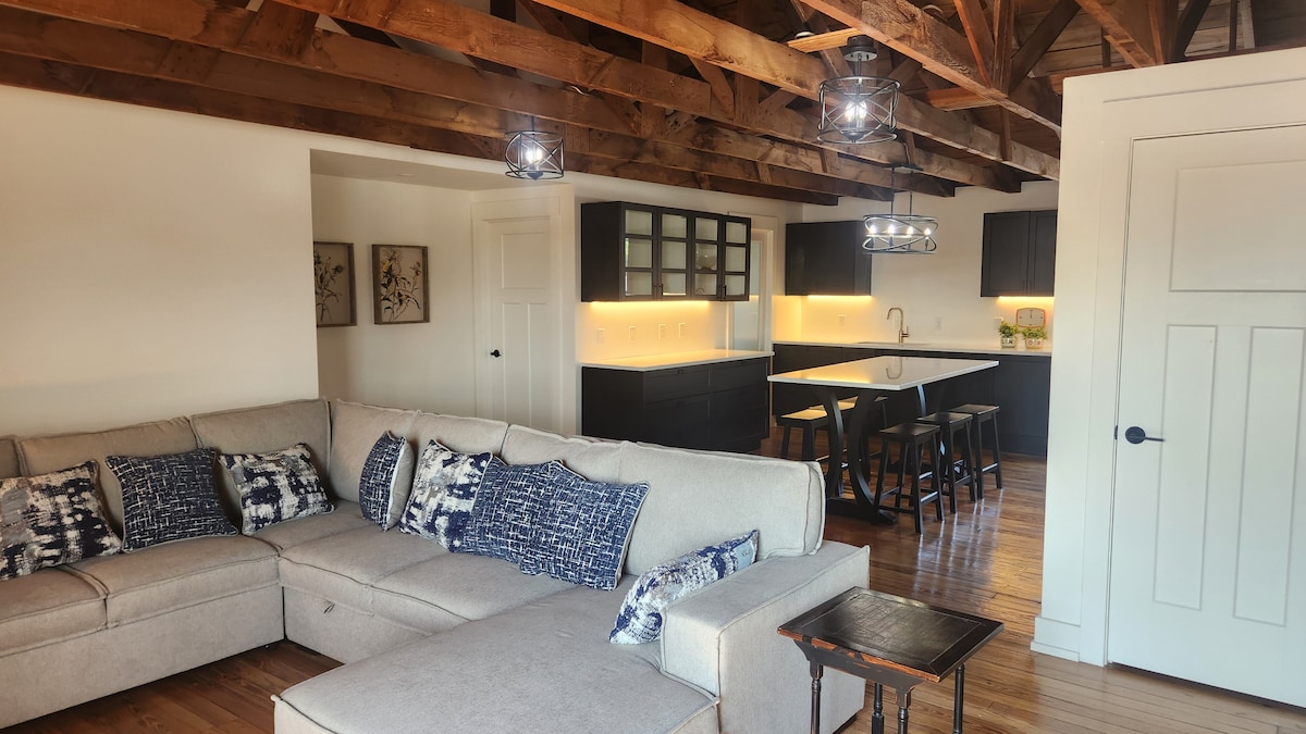 The Inn on Jefferson proudly presents The Drumlin Suite - a modern loft-style apartment in a historic building in the Heritage Hill! We have created an incredible hotel room in Grand Rapids that sleeps 4 with a Master Suite with a king bed & a full bathroom in addition to a Den containing a Queen pull-out sofa. There is also second full bathroom. Designed to keep the architectural features of the original! A full kitchen & living room complete this amazing Suite! Nothing but 5 STAR Reviews!