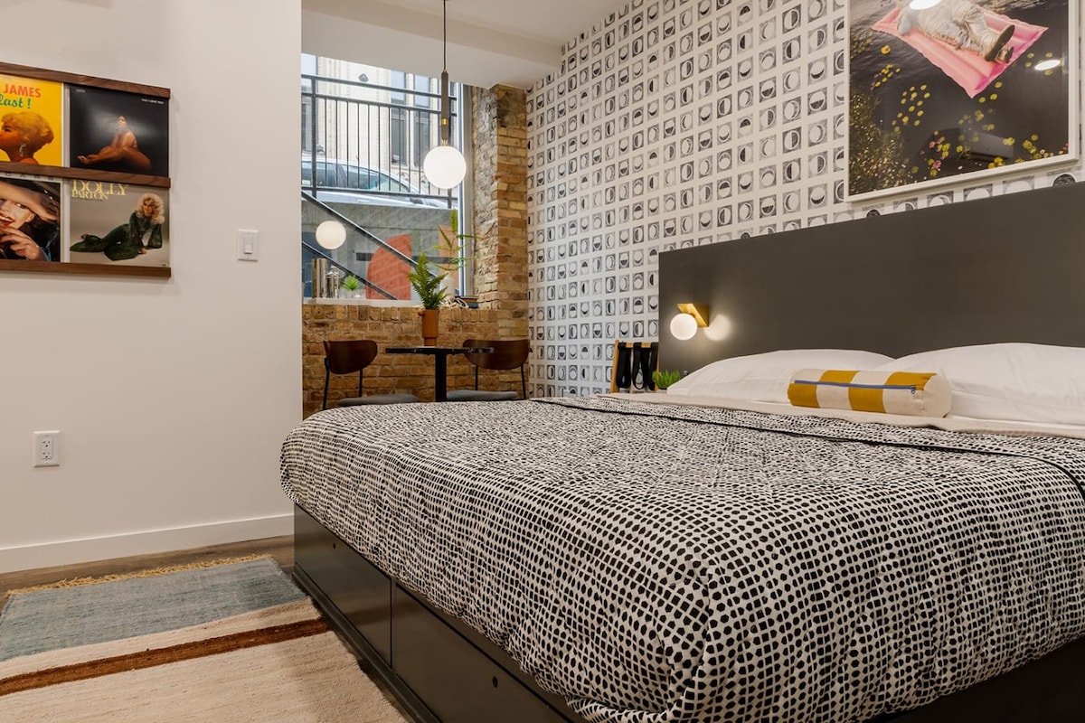 Step into modern elegance at The Finnley Hotel. Located in downtown Grand Rapids, our super stylish boutique hotel offers a unique blend of upscale comfort and vibrant originality. Experience the perfect stay in one of our fully furnished rooms, filled with vintage charm and modern flair. Discover a new level of cool at The Finnley Hotel. Book now and embrace the trendiest spot in town! **Please note: there are no common areas at this hotel.**