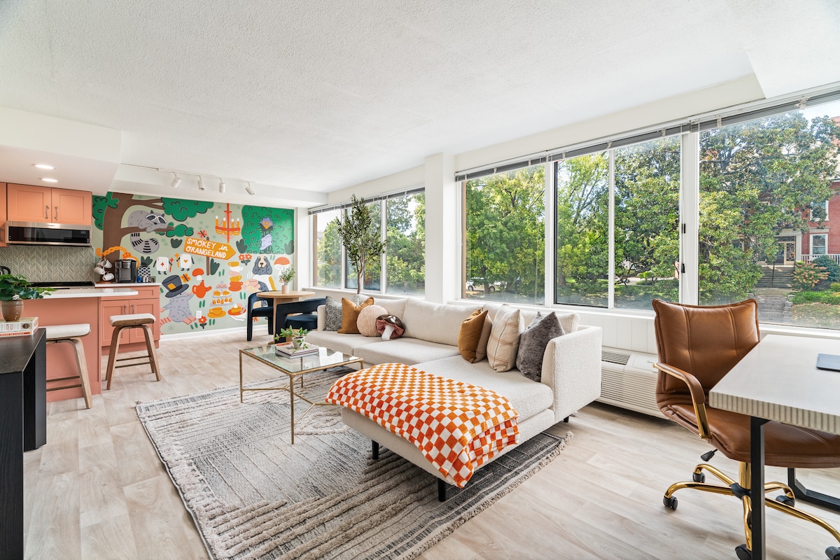 Welcome to your cozy elevated “Suite with a View” on the doorstep of the University of Tennessee with “free parking”. Beyond its perfect location, you will be staying in a professionally decorated suite perfect for friends, couples, and solo travelers looking to experience the energy of city and university life. Your unforgettable retreat provides a perfect blend of city and university activities, the excitement of a game day experience, concert, theatre, or simply the peace of a quiet getaway.