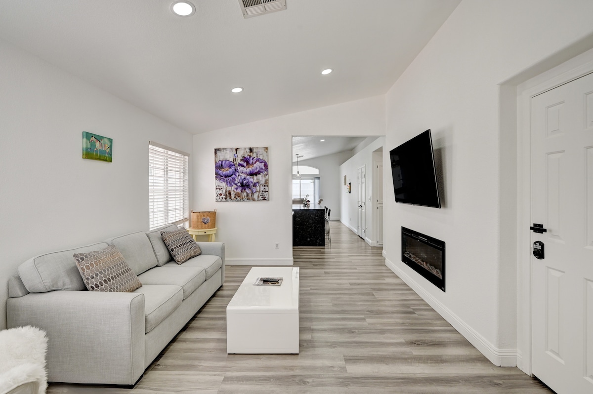 Family-friendly Vegas escape just 15 mins from The Strip, Downtown, Fremont, Arts District, Convention Center & Speedway—with quick freeway access! Enjoy a solar-heated pool (summer), spa, BBQ grill, outdoor dining, 3 full bathrooms!, and a beautifully landscaped yard. Inside: open layout with great light, tinted glass, EV charger, board games, smart TVs, and lots of space. Close to Red Rock, Mt. Charleston, parks, shopping & dining. Relax and have fun—you’ll love it here!