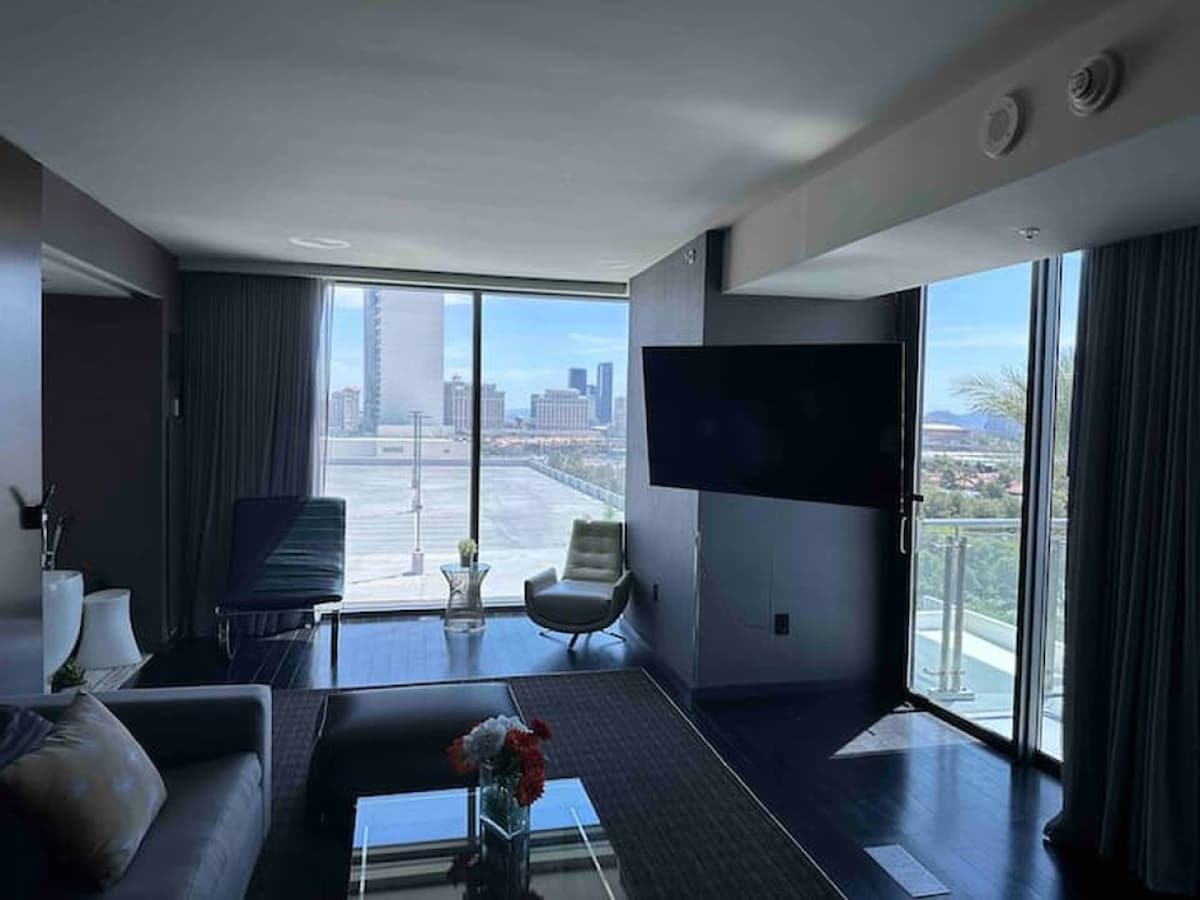This stylish place to stay is perfect for group trips. Here’s your chance to experience the authentic Las Vegas life at the Palms Place Hotel and Spa. It's just a couple of miles from the Strip and features a whole host of residences plus amenities, including a swimming pool and gym. You can access them all when you book this modern 1,220-square-foot one-bedroom apartment. Balconies are open as of June 2023.