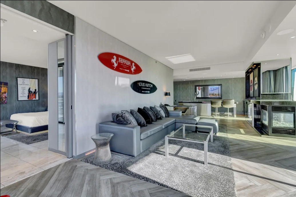 Welcome to Palms 37! Experience Vegas in style at this ultra-modern, one-of-a-kind 1BR suite with a massive wrap-around balcony and breathtaking views of the Las Vegas Strip. This upgraded suite features sleek, custom interiors, a fully equipped kitchen, a convenient coffee bar, and floor-to-ceiling windows that bring the energy of Vegas right to your doorstep. Enjoy FREE high-speed Wi-Fi, FREE parking, and direct access to the Palms Casino. Just a short walk to the Strip, nightlife and dining!