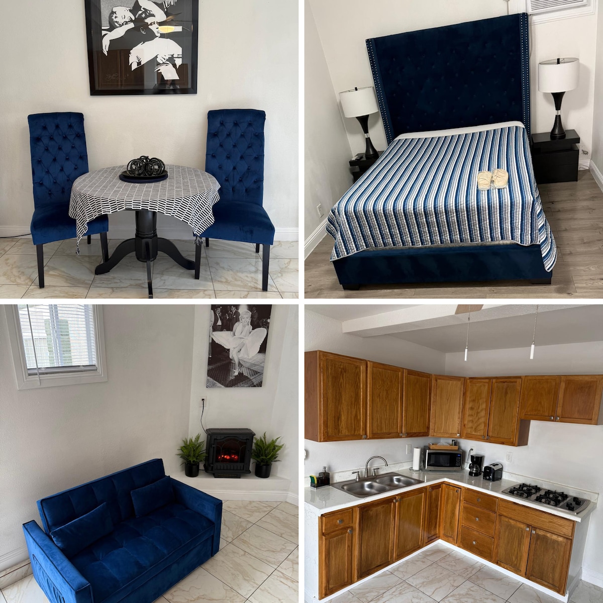 Luxury Guest House with full kitchen and home amenities, comes with a queen luxury mattress bed with a Futon Sofa bed that can accommodate one more adult or 2 children. The place is a guest house with it’s own private entrance on the side of the house can’t missed the pavers way leading you to the entrance gate. 5 mins from the airport and 5-10 mins to the strip it is a great location. We’ve got cameras, for your protection and ours we have cameras filming only the front of the property.